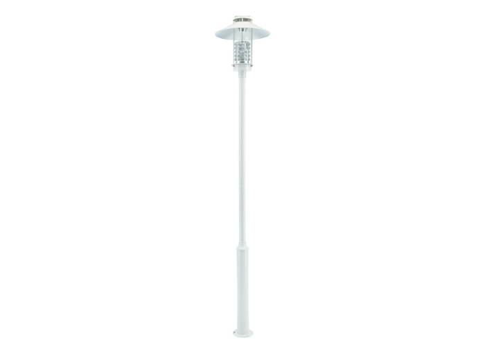 El OD-1034R1 es una luz de jardín exterior elegante y duradera, diseñada para parques, senderos y paisajes residenciales. Con un elegante poste de acero blanco y una cubierta con lamas anti-reflejo, combina comodidad visual con alta resistencia a las inclemencias del tiempo. La luminaria admite bombillas LED E27 de hasta 25W y cuenta con una clasificación de protección IP66 para una completa resistencia al polvo y al agua, lo que la hace ideal para entornos exteriores difíciles.